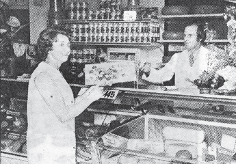 De heer en mevrouw Verboom in hun zelfbedieningszaak te Nieuwerkerk (bron IJ en L)