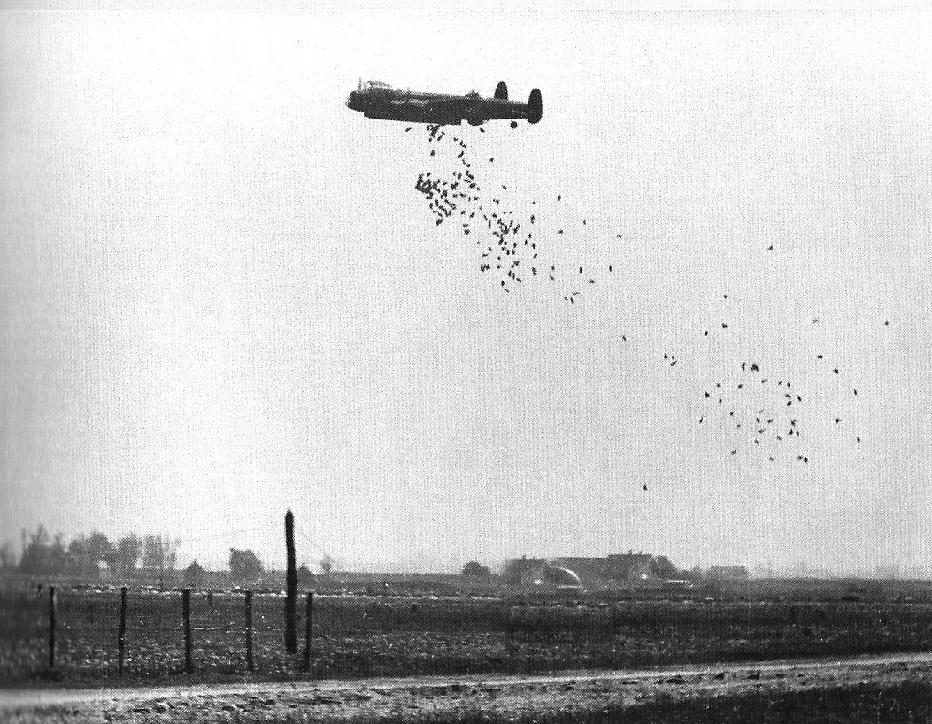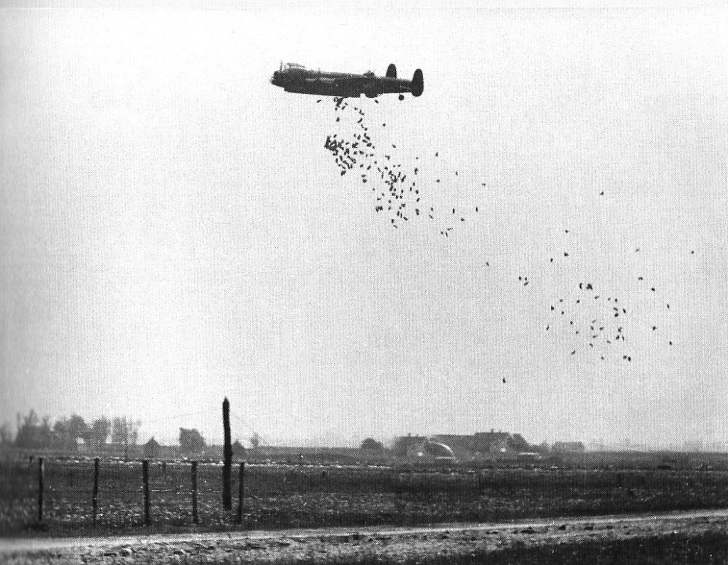Er kwamen vliegtuigen over die eten dropten op het weilanden van boer Van Der Ham. Dat was een mooi gezicht. We kregen blikken Pork (vlees) en kaakjes.