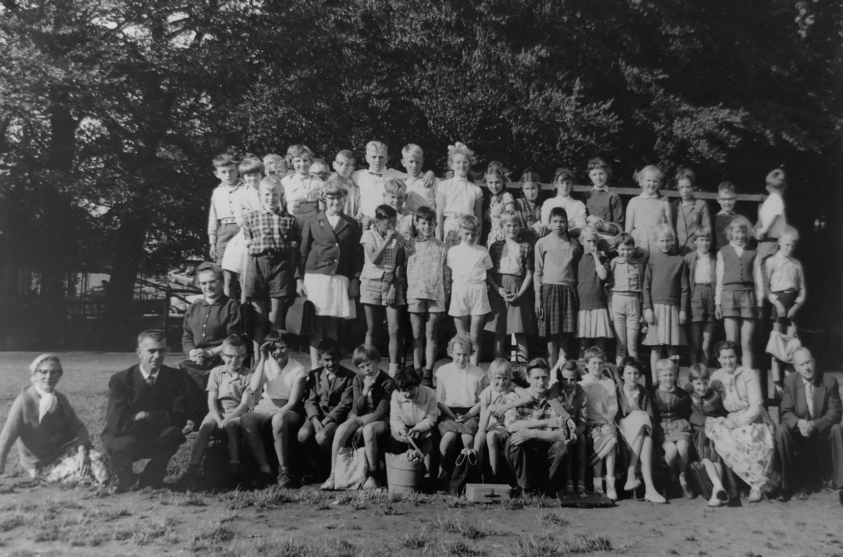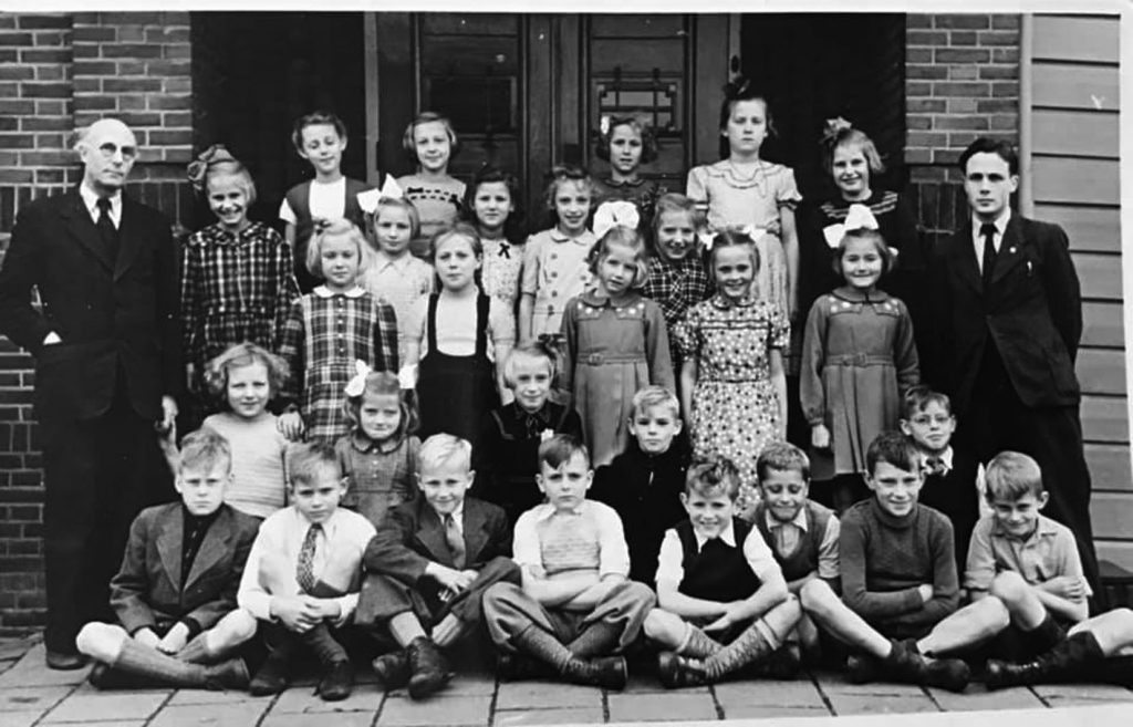 – Staand v.l.n.r.: Rinus Oosterom, Henk Stout, Tineke Boudewijn, Gerrit Stam, Corrie Labrie, Rietveld, Meester Frederikze, Adriaan Oudijk, Jannie de Graas, R. Frederikze, Sonja van Erkel en Maarten v. Winden. Zittend v.l.n.r.: Trees Tanasali, Corrie van Erkel,Carla Oosterom, Lia Flipse, Janneke de Wit, Ada v.d. Ben, Rita v.d. Plaats, Hennie Karreman en Grietje van Dam. –