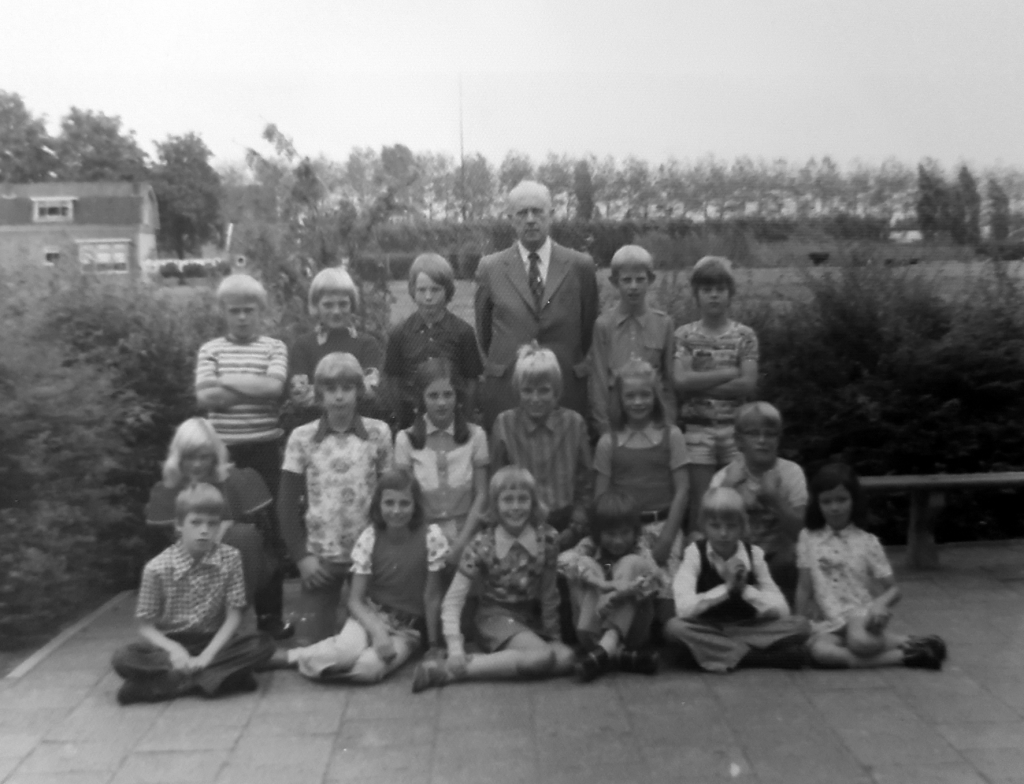 – Klas 5 of 6 (1975 of 1976) Staand vlnr: Martien de Groot, Paul Vente, Rens Wiegeraad, meester Frederikze, Riny Palschraaf, Manfred Kaufman. Middelste rij vlnr: Lenie Boudewijn, Anton Breugem, Arina van Herk, Peter Spek, Astrid Nomen, Martin Molenaar.